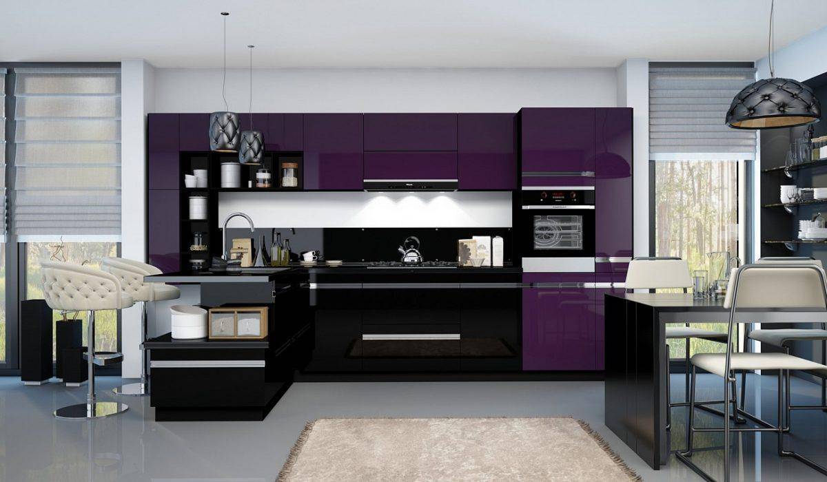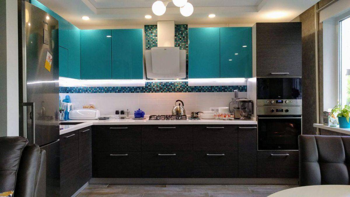 Яркие цвета усиливают эффектность кухни. Это могут быть шторы, стулья, текстиль, фартук, декоративная подсветка, предметы декора.