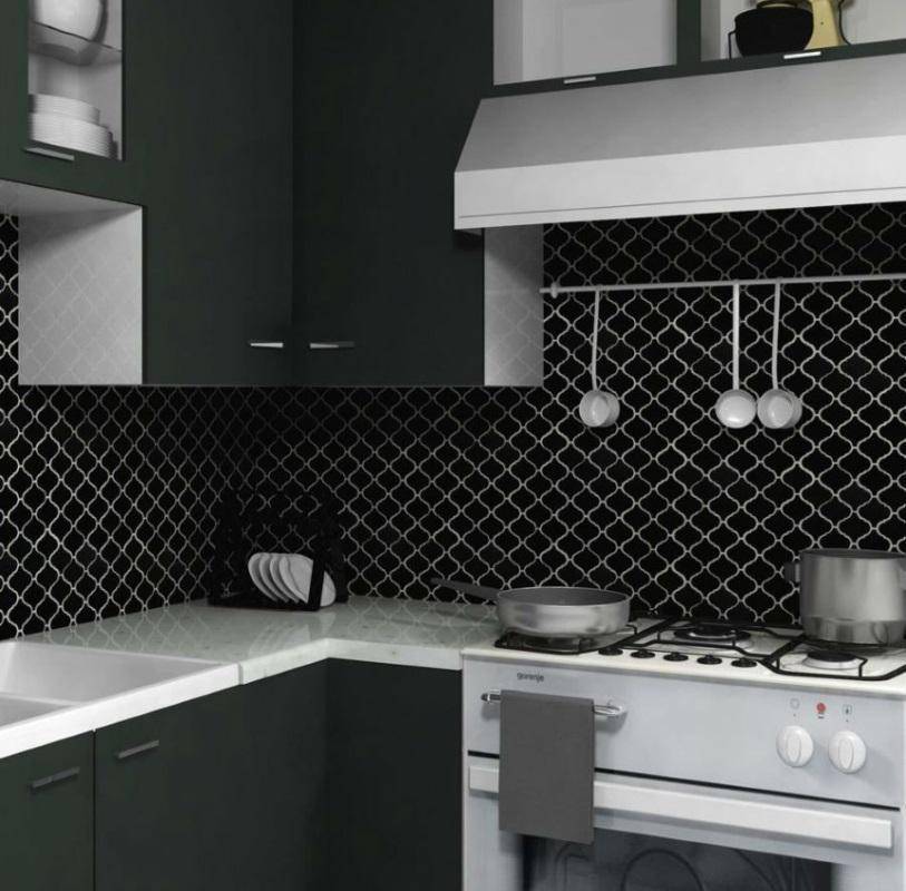 Чёрный на стенах сужает пространство. Если кухня маленькая, можно использовать дополнительный цвет.