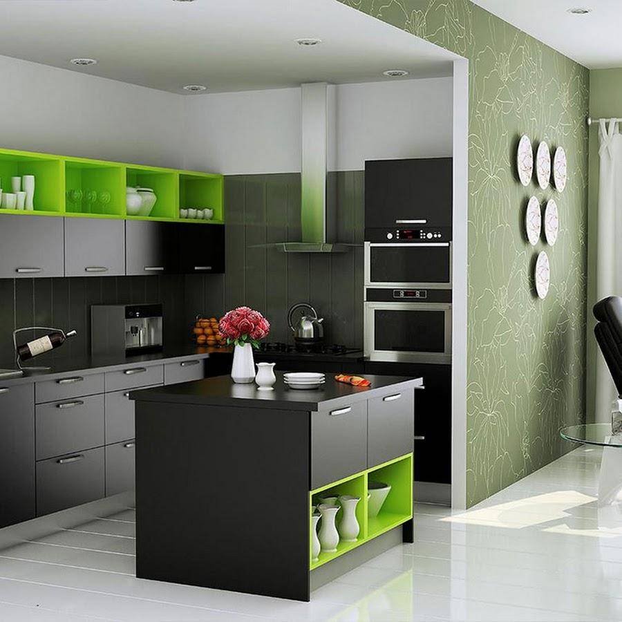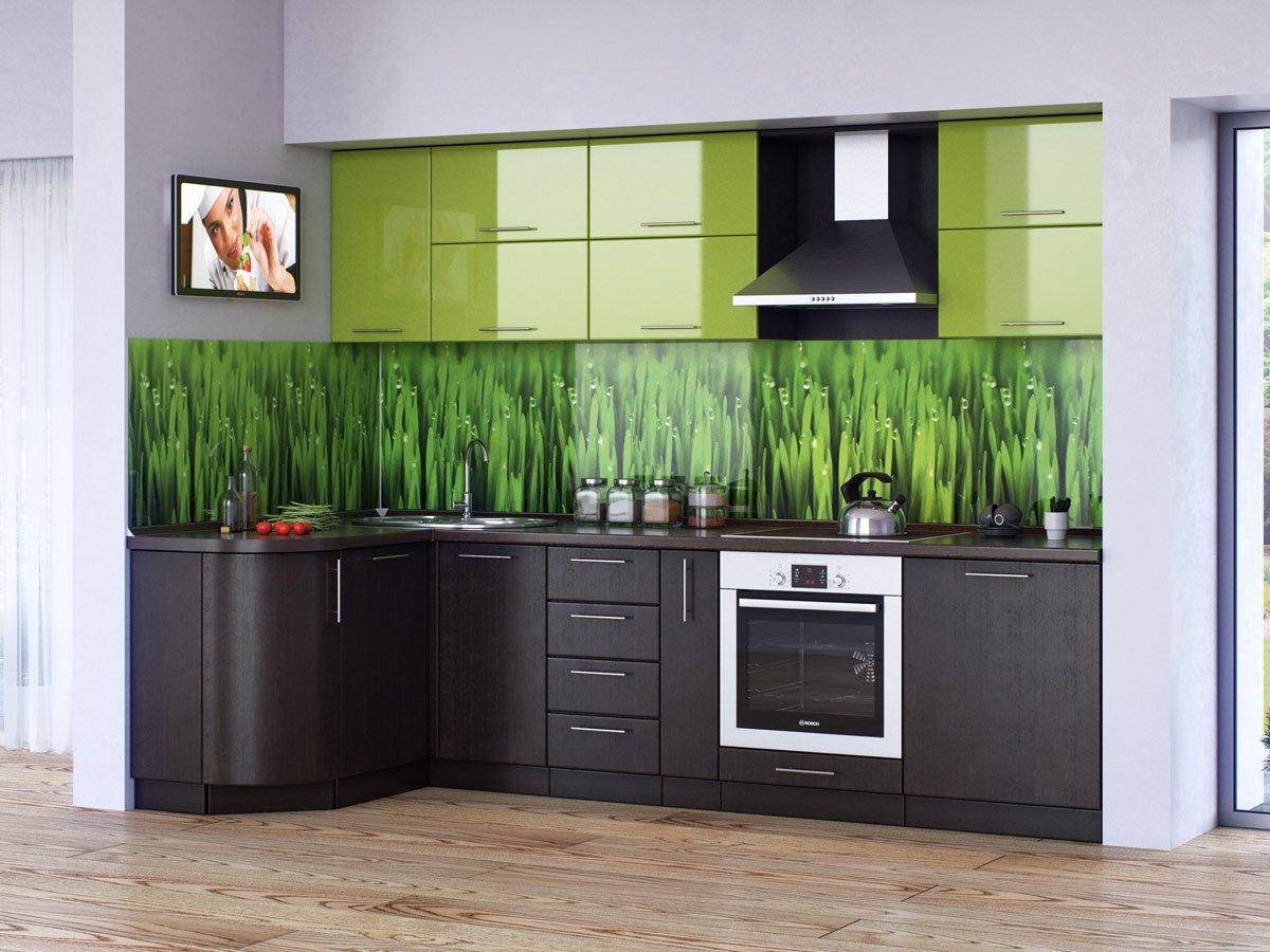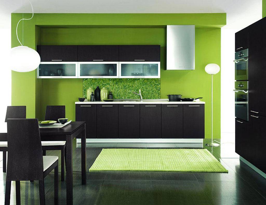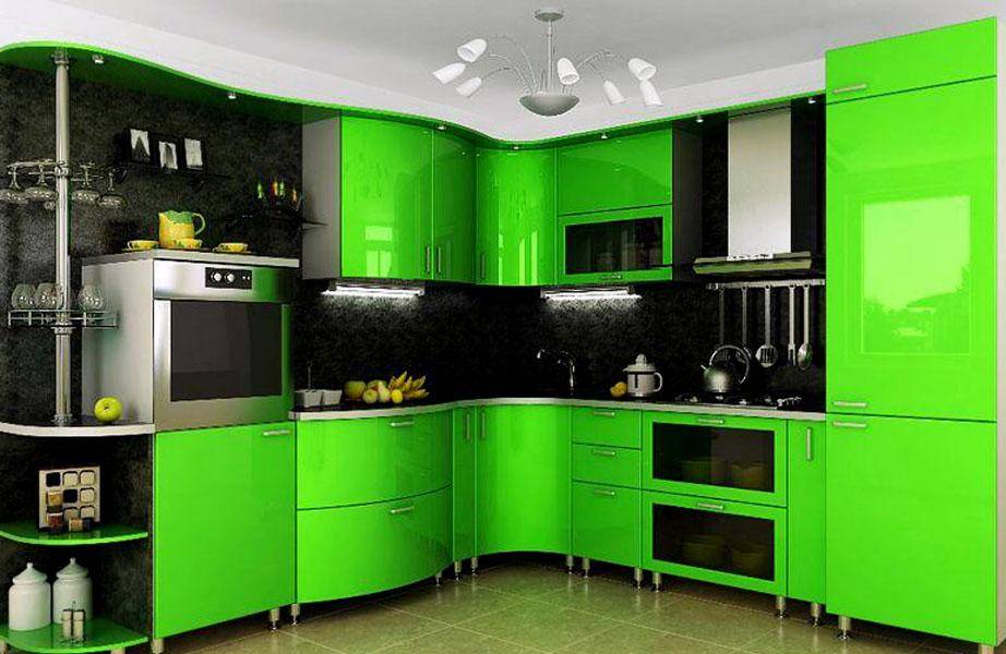 Для чёрного гарнитура идеален дополнительный цвет, который используется в проекте. Например, травянисто-зелёный.