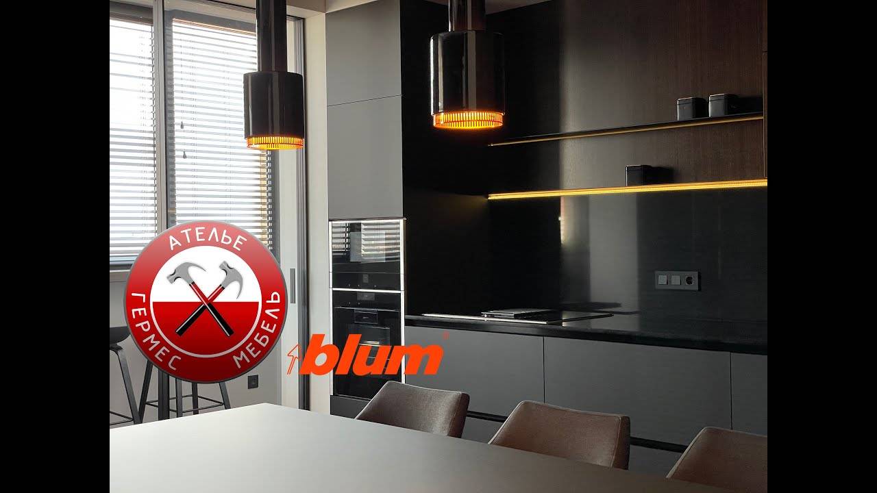 Черная КУХНЯ FENIX + Рейки + КАШПО + СТОЛ. № 139.