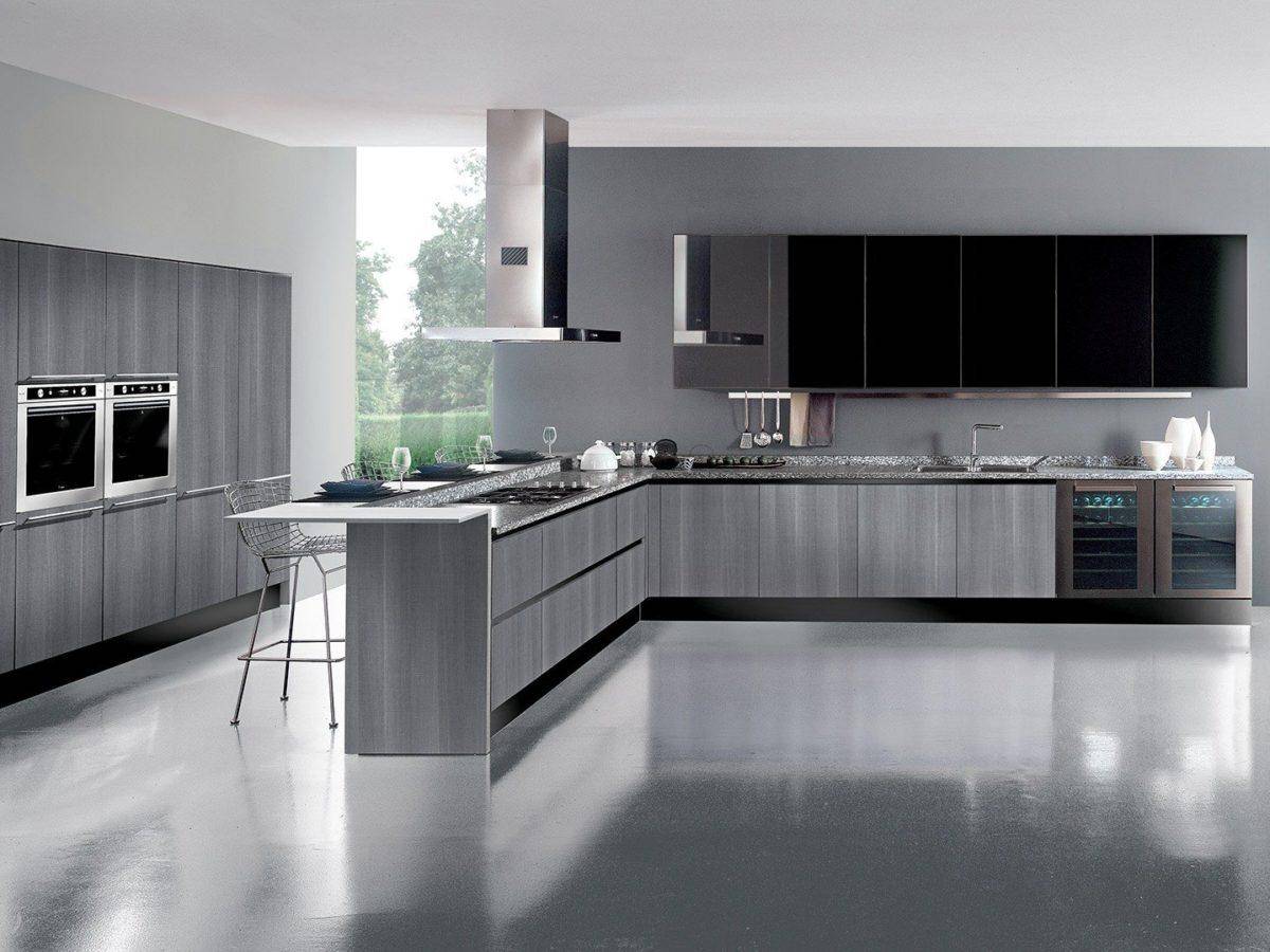 На кухне в стиле модерн нет ничего лишнего. В ней много воздуха и пространства. Чёрный рекомендуется использовать снизу (пол, стол и стулья, нижние фасады). Верхнюю часть интерьера отдают под светлые тона.