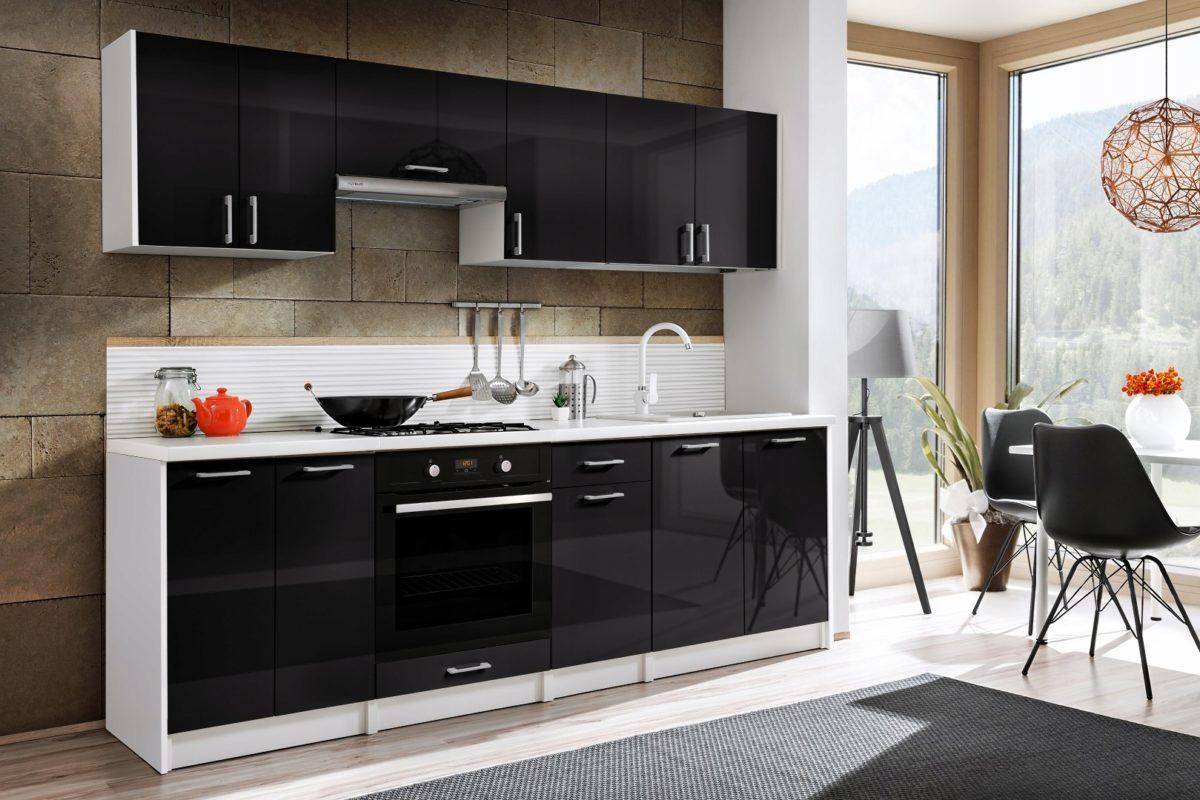 Чёрный гарнитур — обязательный элемент. За счёт него кухня смотрится эффектно.