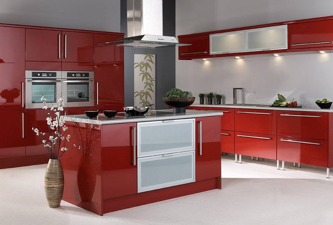 Этот яркий цвет, используемый для кухонь в качестве базового, отлично подходит тем, у кого низкое давление или плохой аппетит. Алый оттенок зрительно делает предметы массивнее и как бы приближает их. Поэтому его можно применять для оформления больших помещений, которым он придаст уюта. Этот цвет хорошо уравновешивает белый или бежевый, а также серый или древесный. Для того чтобы не перегружать интерьер, красный лучше использовать для декора или обивки мебели.