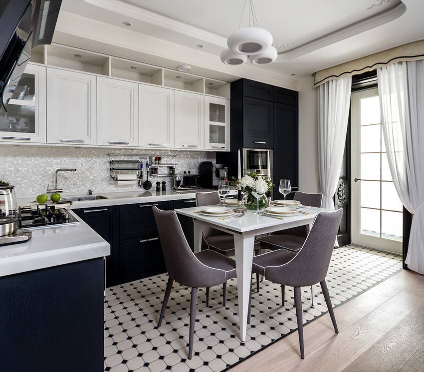 Черно-белая цветовая гамма кухни: фото оригинальных примеров