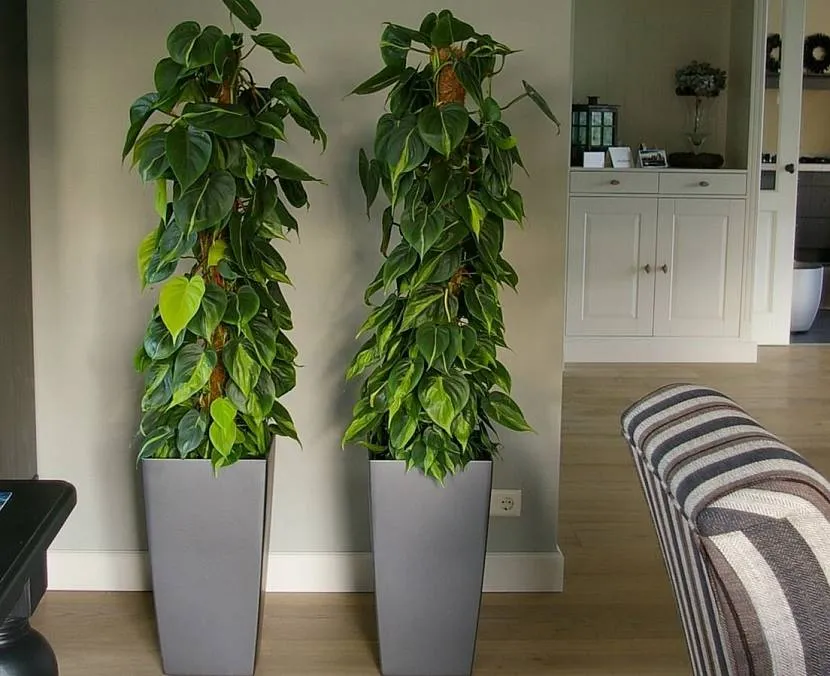 Зонирование можно провести с помощью живой изгороди из лиан, побеги которых закреплены на специальных решетчатых экранах или опорах. Крупные одиночные растения в напольных горшках, размещенных в ряд, также прекрасно справятся с целью.