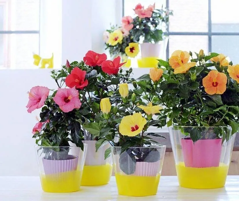 комнатные растения в горшочках в интерьере