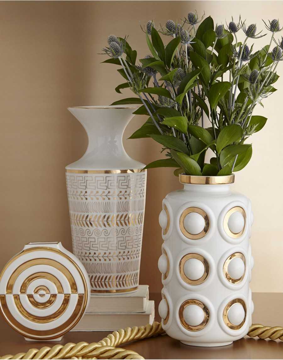 - Дополнят белый дизайн кухни красивые кашпо или напольные вазы с цветочным принтом.