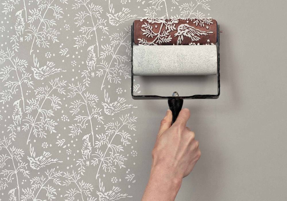 Оригинальность и неповторимость такого метода окрашивания позволит оформить стены в индивидуальном стиле. Чтобы создать узор напоминающий обои применяют валики-трафареты. Подходят резиновые или силиконовые модели. Можно использовать и ворсистые валики – получается интересный узор.