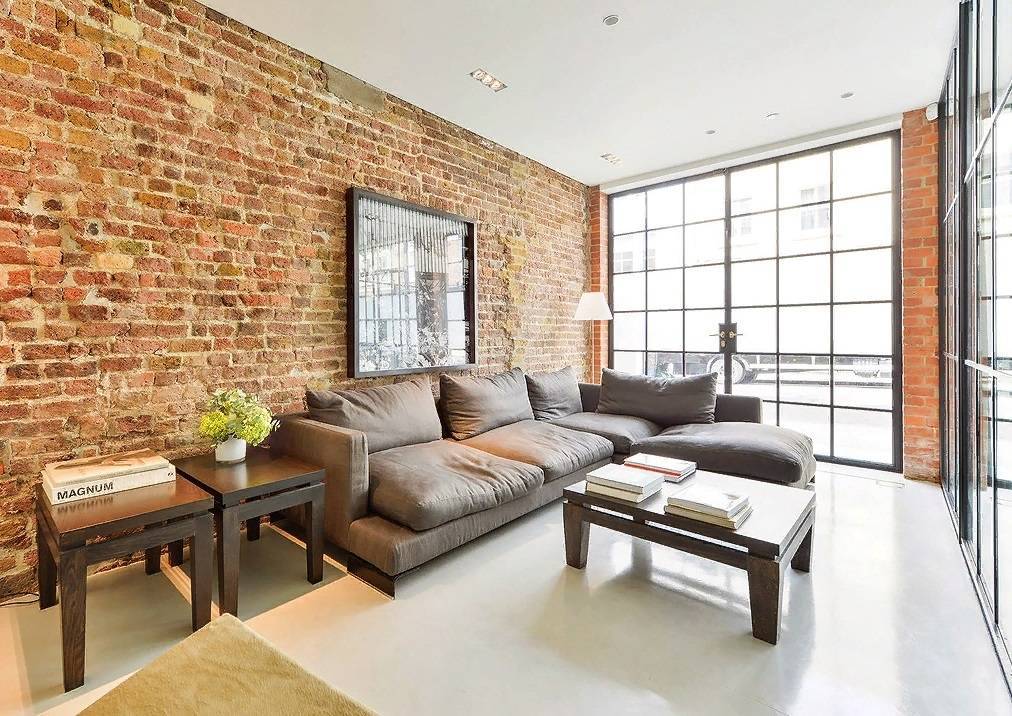 Лофт — идеальная возможность использования стен под кирпич. Здесь можно не выдерживать акцент на одной стене, а использовать такую фактуру на всех поверхностях. Идеальны нейтральные оттенки серого и бежевого.