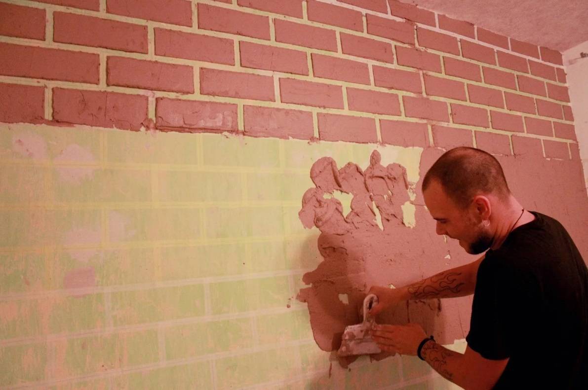 Декоративная отделка стен под кирпич своими руками предполагает тщательную подготовку стены. Если на ней осталась краска или обои, их удаляют. Делается это разными способами, но чаще краску снимают с помощью шпателя, а обои им же поддевают. Если последние плохо отклеиваются, на них нужно нанести воду и подождать, пока клей растворится. Правда, это актуально для водорастворимых составов.