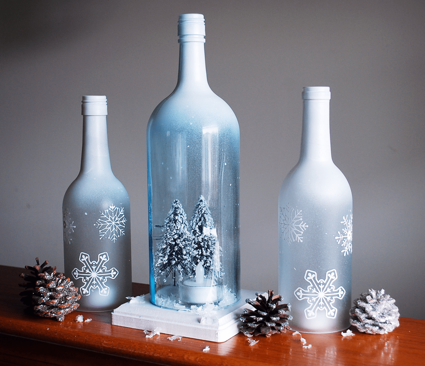 Украшение стеклянных бутылок для интерьера