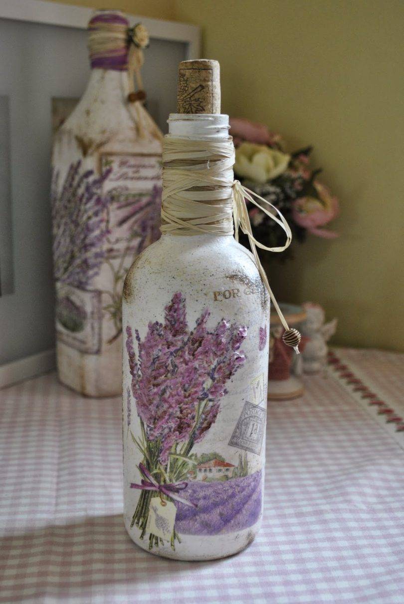Бутылка, оформленная в технике декупаж в винтажном стиле