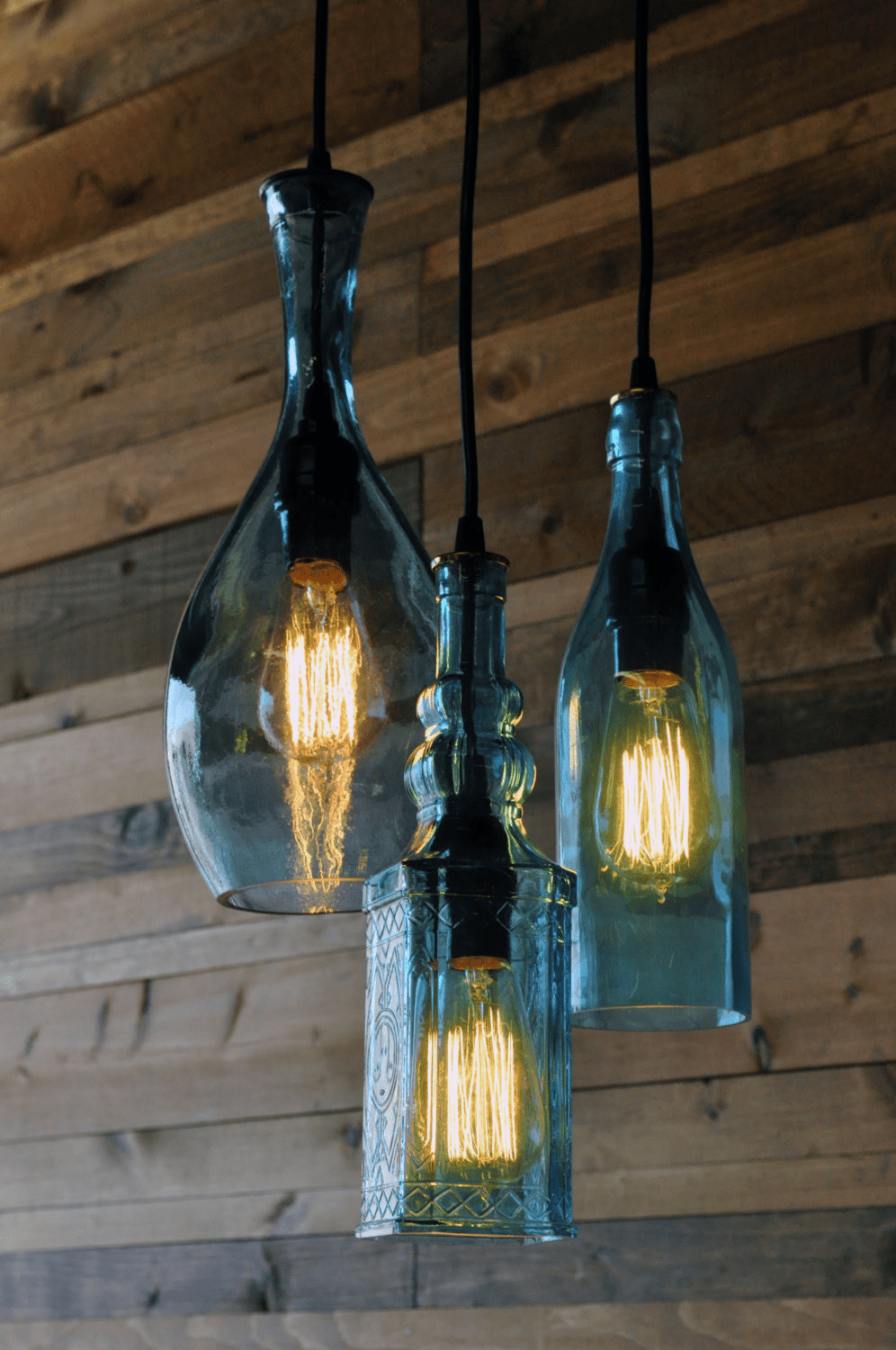 Необычные по форме бутылки можно использовать в роли плафонов для лампочек