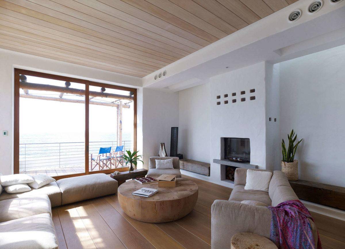 Гостиная, пожалуй, лучшее место для применения вагонки в качестве отделки потолка. Эта комната идеально подходит для натурального декора, поскольку предполагает уют и отдых.