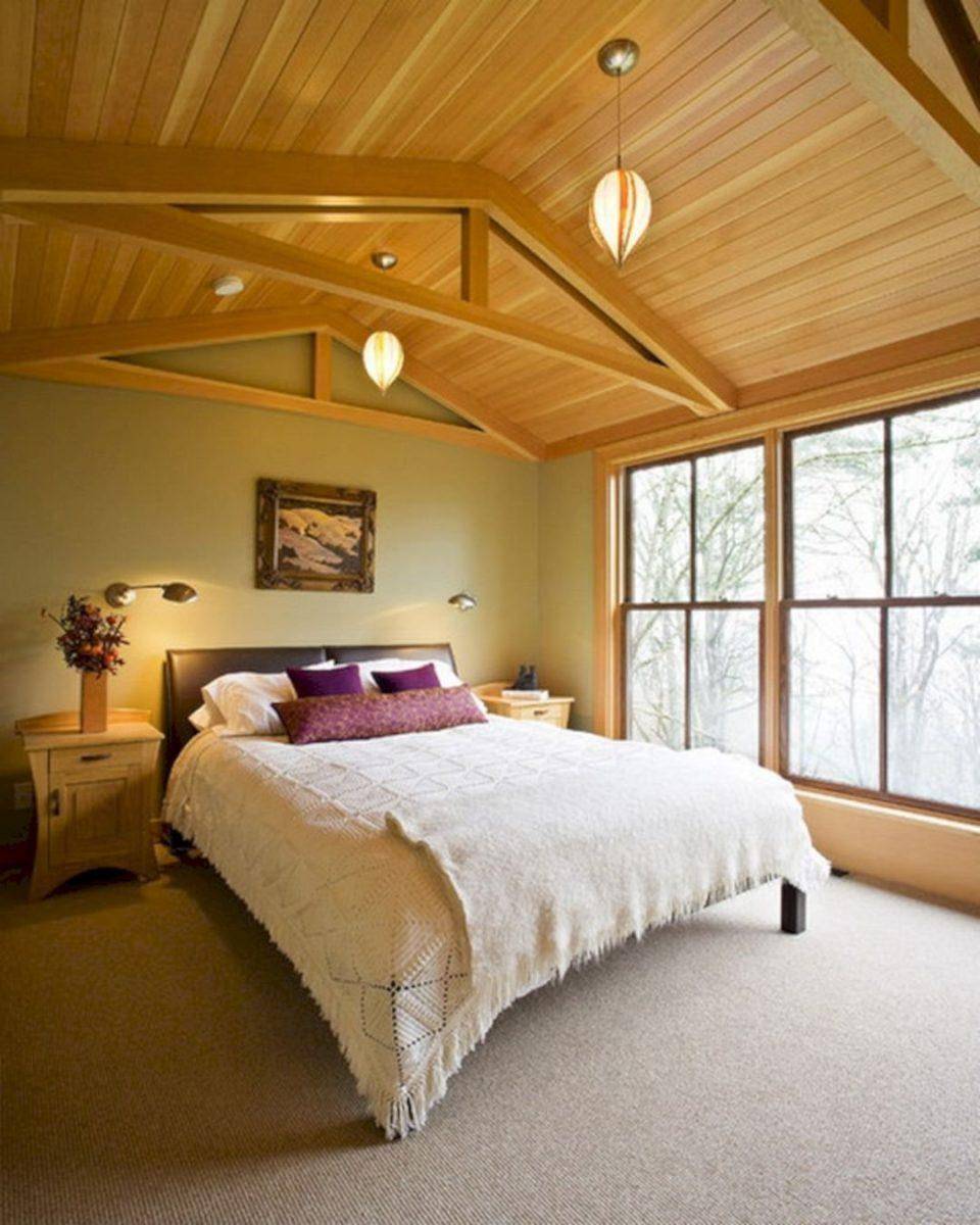 Спальня – это место для отдыха и сна. Вагонка на потолке в этой комнате будет смотреться уместно и гармонично. Поскольку натуральное дерево создаёт ощущение уюта и домашней атмосферы.