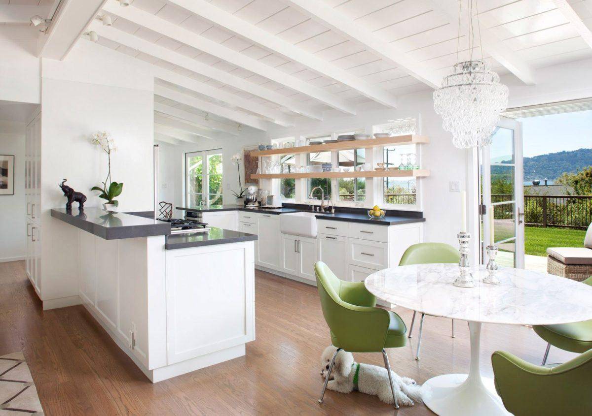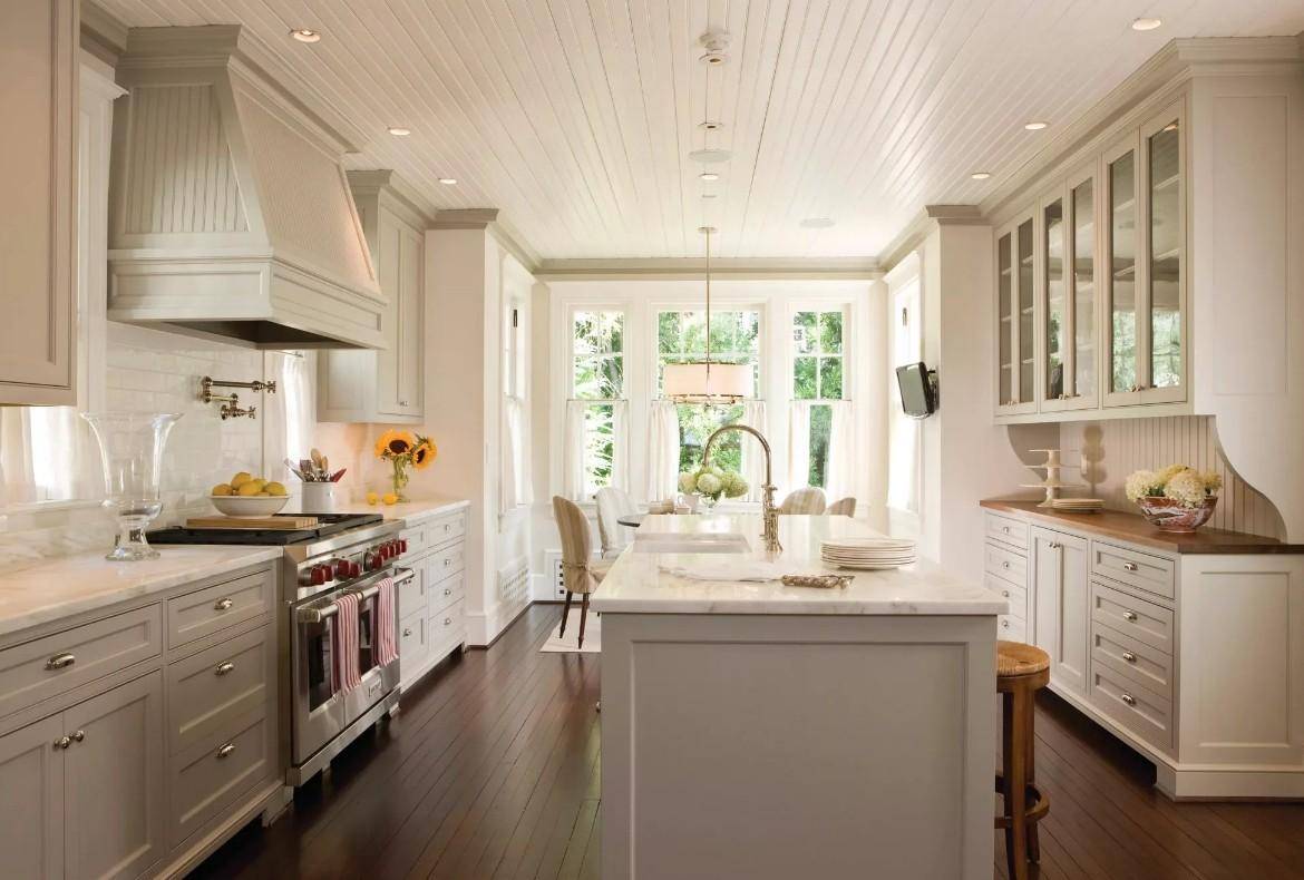 В качестве фартука или для оформления стен использовать её не стоит. Для потолочного покрытия вагонка может быть белой или натурального цвета. Так она органично впишется в дизайн.