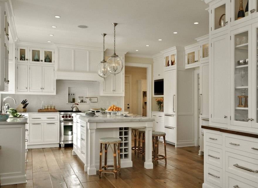 Белую кухню можно обустроить в стиле прованс или кантри. Классический интерьер всегда будет выглядеть роскошно и дорого. Белые предметы мебели и отделка должны подчеркиваться отсутствием лишних деталей при выборе стиля минимализм или хай-тек.