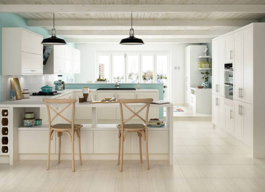 Белый цвет для оформления кухонного интерьера считается самым популярным. Позволяя применить на практике массу дизайнерских идей, данные цветовые вариации способны визуально расширять пространство и вписываться в различные стили. Излишнюю холодность и строгость можно разбавить более красочными, теплыми оттенками.