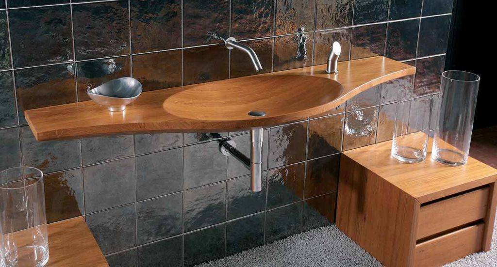 Деревянная столешница наполнит ванную комнату теплом, исходящим от натурального дерева