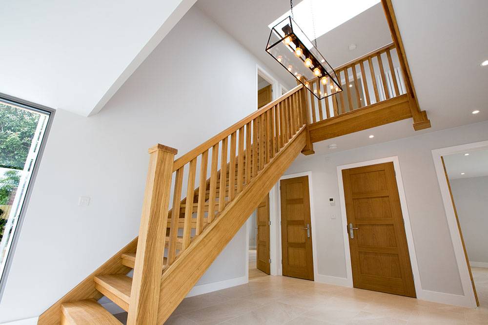 Дом из бруса, бревна или изготовленный по каркасной технологии чаще всего оснащается деревянной лестницей. Преимущества материала проявляются в следующем: