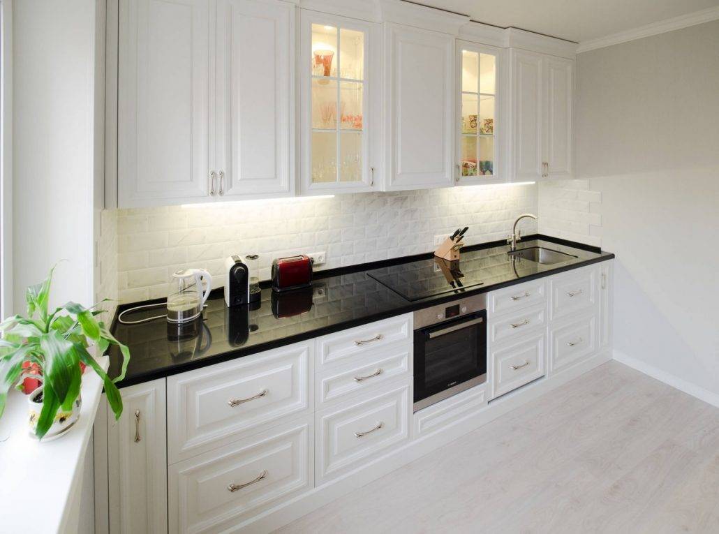 Обратите внимание и на освещение. Так как черные линии и контуры призваны именно сосредоточить взгляд на общую картину кухни – белые составляющие должны также выгодно смотреться на общем фоне