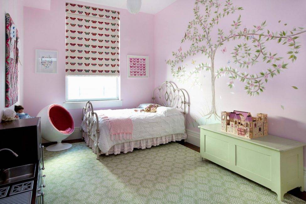 - цвета – выберите разные оттенки для стен, мебели и текстиля в зависимости от предпочтений девочек;