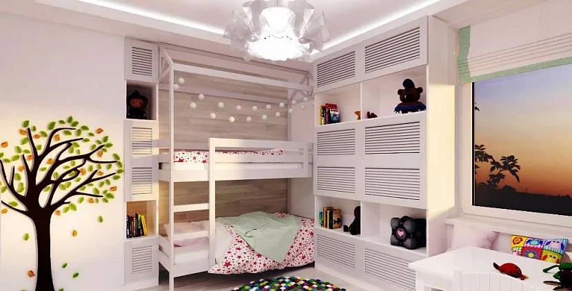 У каждого ребенка в общей комнате должно быть не только свое собственное спальное место, но и личное пространство для учебы и хранения одежды