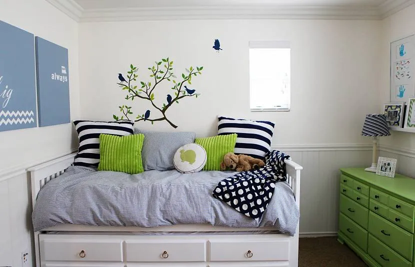 - Слишком яркие или чересчур большие рисунки сделают детскую беспокойной, а также визуально уменьшат ее.