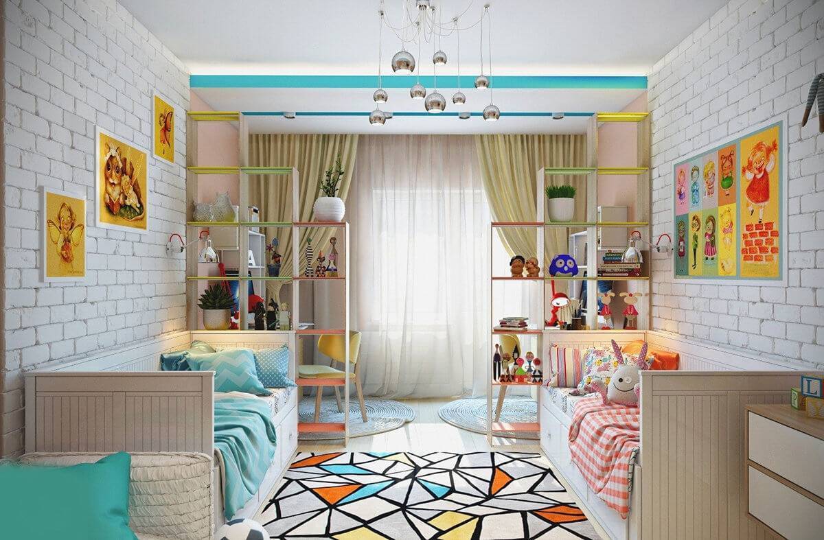Зонирование комнаты – ключевой аспект в дизайне детской для разнополых детей. Основная цель создания дизайна комнаты для двоих разнополых детей– разграничить для каждого ребенка личное пространство. Зонирование выделяет место для сна, хранения вещей, учебы. Для мальчика и девочки можно выделить уголки, используя перегородки, шкафы или шторы.