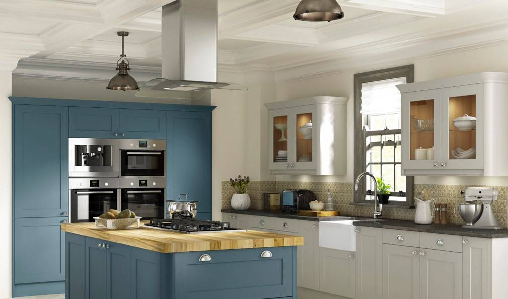 Кухни в стиле прованс можно оформить в серо-голубом цвете. Для украшения интерьера пользуются перламутровыми тонами и оттенком голубой патины.