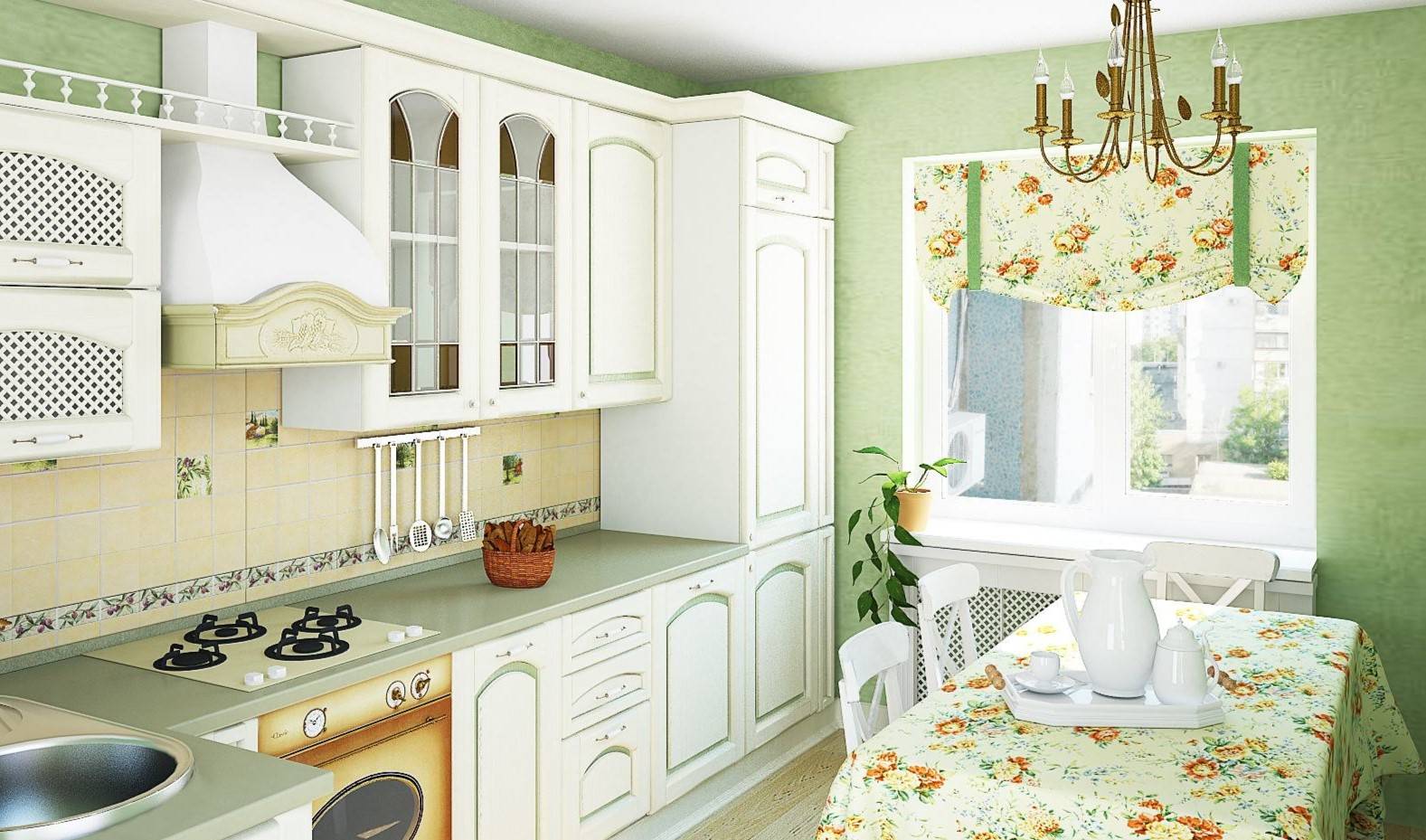 Кухня с интерьером в стиле прованс, в которой удачно подобран каждый элемент декора