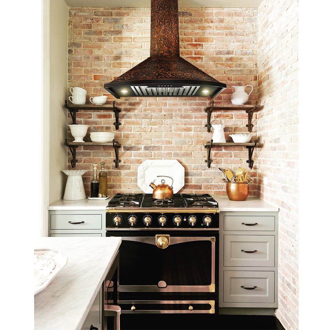 Кирпичная кладка заменяет фартук на кухне.
