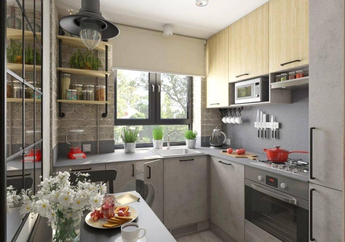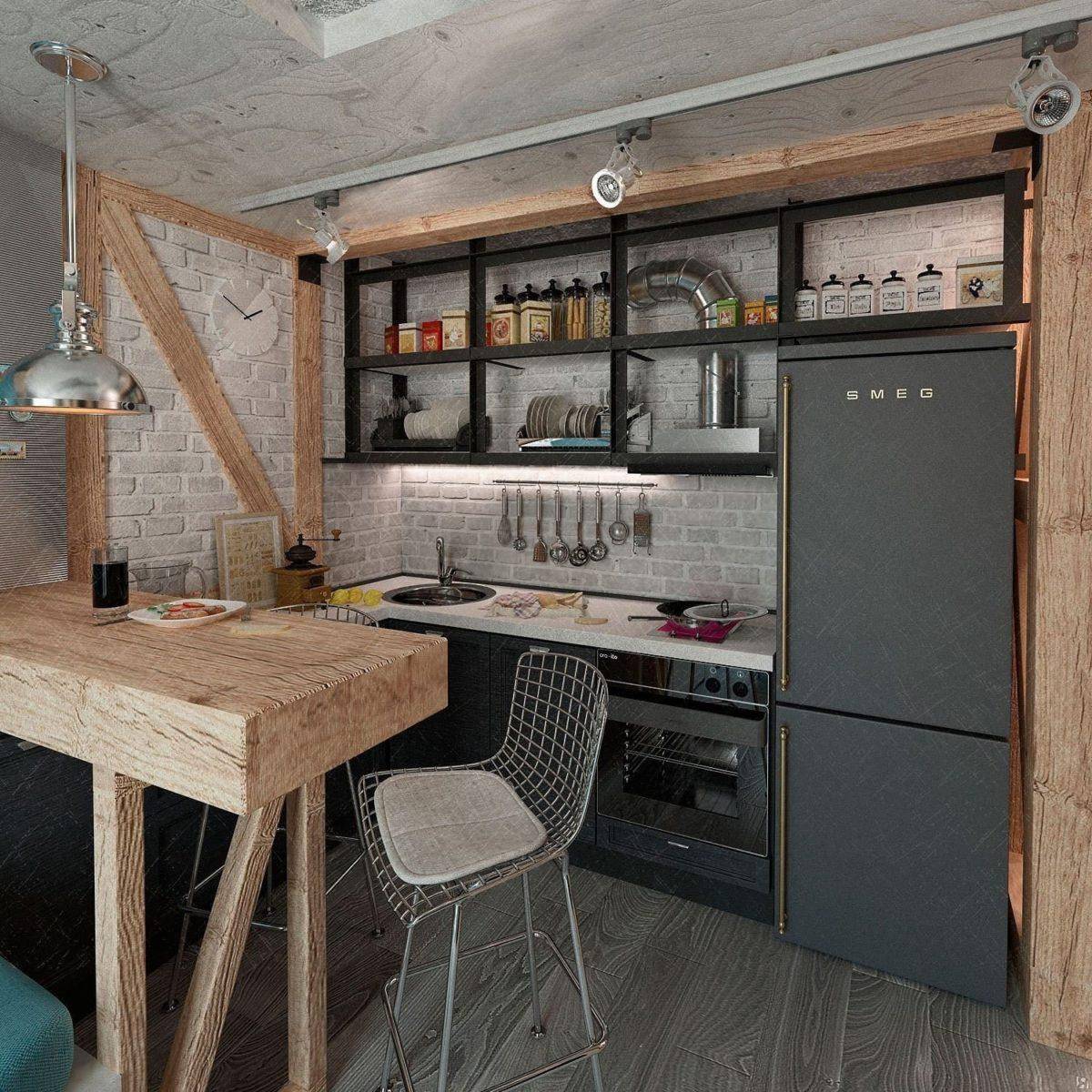 Индустриальный стиль предпочитает открытое пространство, но его черты можно воплотить и на кухне площадью 6 кв. метров.