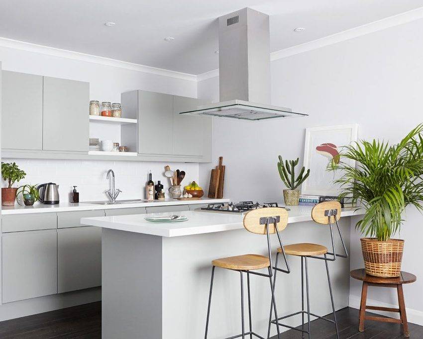 Белый окрашенный ровный потолок — маст хев любой современной кухни