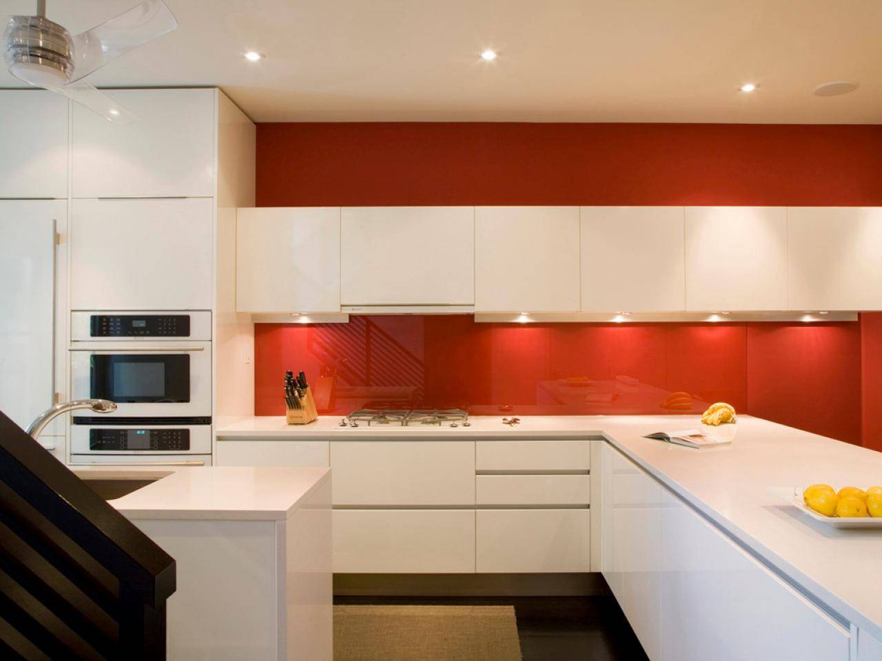 Даже стены могут быть красными, но тогда в кухонном гарнитуре должен преобладать белый цвет. При создании такого интерьера следует отдавать предпочтение дорогим материалам.