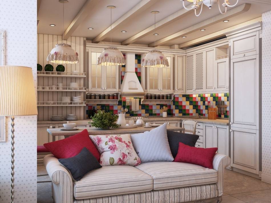 В прованском стиле для кухни-гостиной следует подобрать несколько характерных предметов: