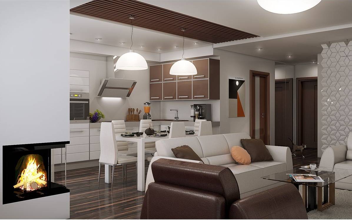 Дизайн-проект кухни-гостиной 30 кв. м выполняется в общей стилистике и отображает предпочтения и вкусы хозяев. В отличие от кухни, оформление зоны отдыха строится не на функциональности и практичности, а на принципах комфорта; дизайн основывается на следующих принципах: