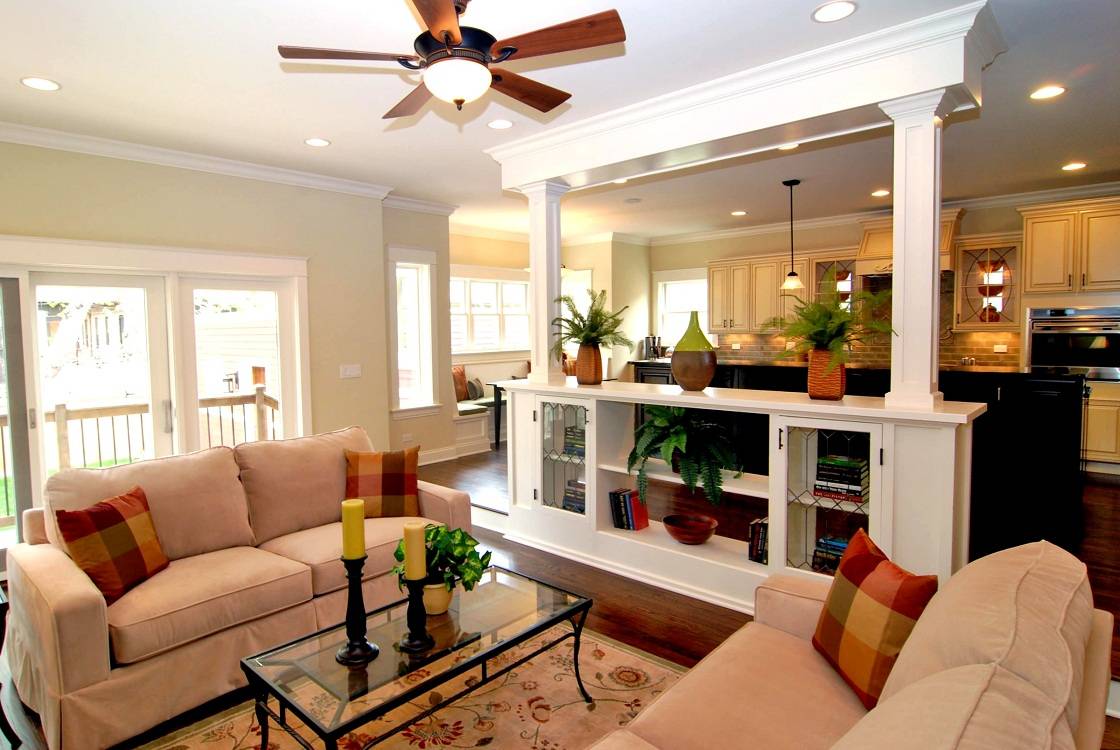 Дизайн студии должен соответствовать требованиям всех членов семьи, особенно если домочадцев много. При совмещении двух комнат не всегда остается возможность уединиться. А иногда и сами хозяйки не хотят, чтобы гости наблюдали за процессом приготовления пищи. Поэтому часто возникает вопрос о временном или символическом разделении большого пространства.