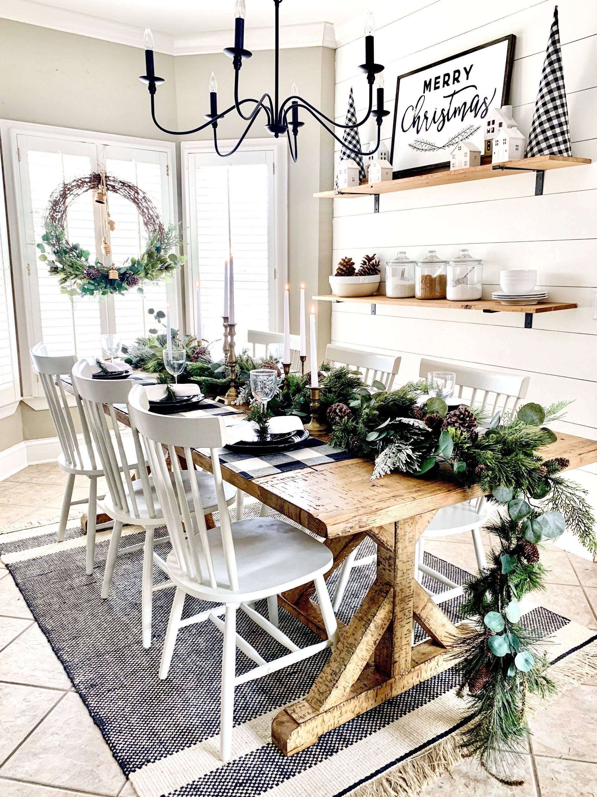 Кстати, его можно продолжить и в интерьере: установить на открытых полках, висящих в зоне обеденной группы чёрно-белый плакат с пожеланием “Счастливого Рождества”, стилизованные ёлки в виде конусов из чёрно-белого клетчатого материала, белые декоративные фигурки в виде небольших уютных домиков, симпатичные баночки для хранения сыпучих продуктов, еловые шишки в красивой лаконичной белой посуде. Окна можно украсить новогодним еловым венком.