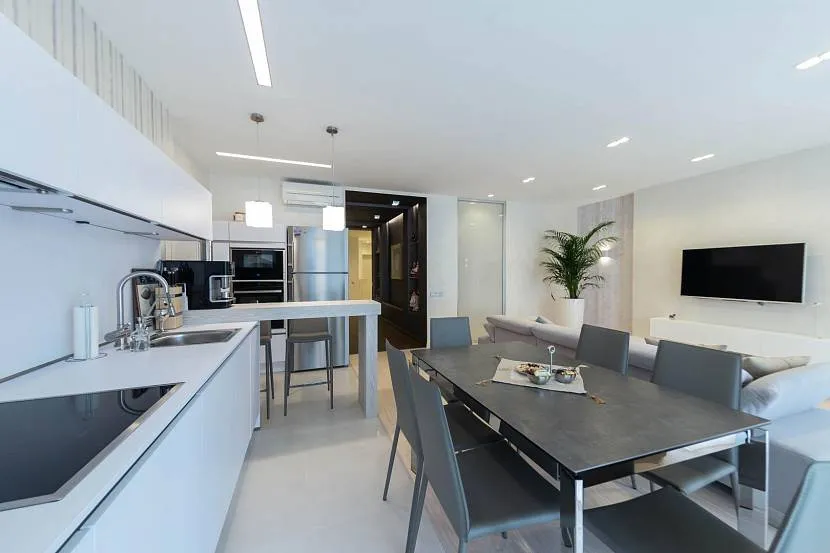 Это высокие технологии, а значит, отрицание лишних предметов на территории кухни-гостиной.