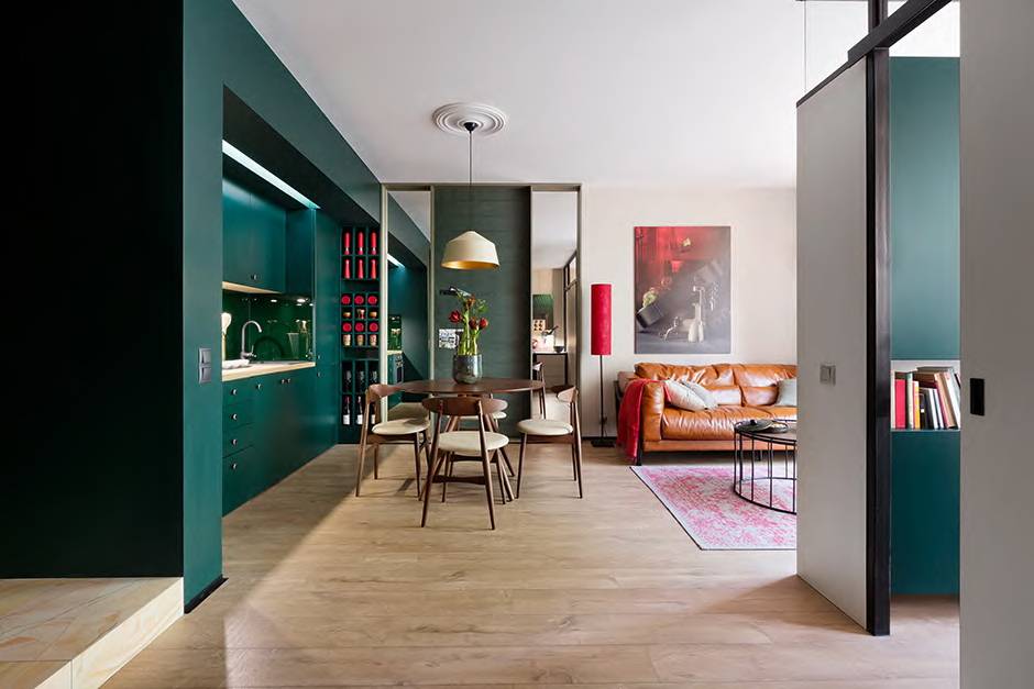 Выделение в типовой квартире кухни-гостиной позволяет провести четкое разграничение между приватной и общественной зонами.