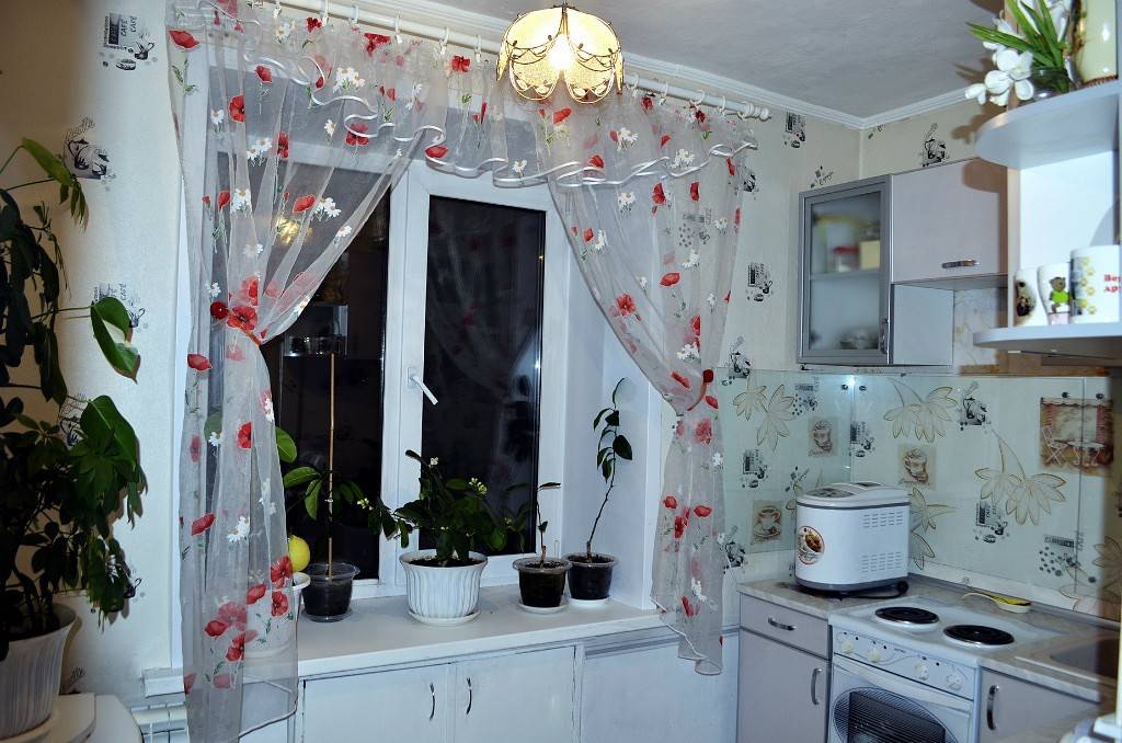 - Кухонные шторы должны обладать повышенной пропускной способностью, чтобы кухня освещалась даже при задернутых занавесках.