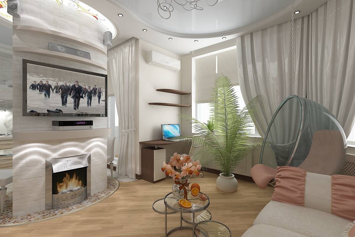 В вопросе выбора декора следует отталкиваться от общей концепции стиля. Для минимализма или хай-тек присутствие дополняющих оформление предметов совсем неуместно. Поп-арт диктует свои правила — выбирают броские и дерзкие декоративные элементы неоновых цветов, коллажи и репродукции картин Энди Уорхола. Лофт органично разбавят черно-белые фотоснимки и плакаты. Из текстиля отдают предпочтение светлым шторам и гардинам. Такие оттенки сделают зал более просторным и ярким. Если перед владельцем квартиры стоит задача воссоздания уютной, таинственной и интригующей атмосферы, текстиль подбирают из плотных материалов в темных тонах, например — из бархата.