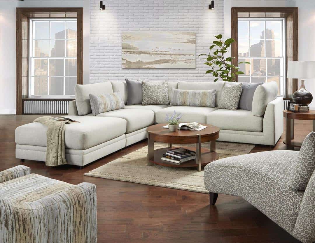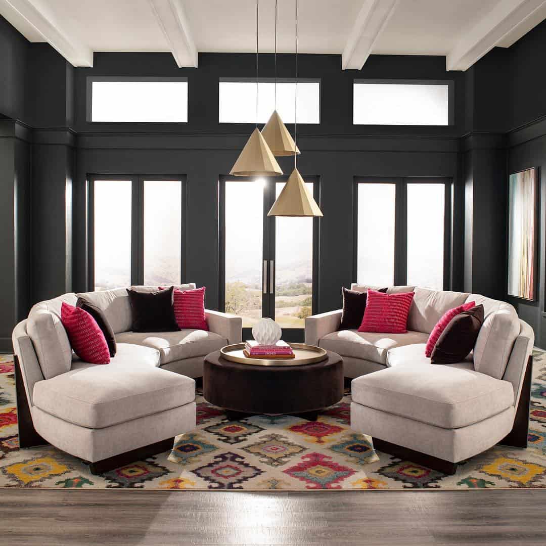 Если в комнате будет мало мебели, а основная ее задача – разместить большую компанию, то обрати внимание на широкие диваны на 5-6 мест. Чтобы он не был слишком уж громоздким, выбирай модели с легкой спинкой и без крупных подлокотников