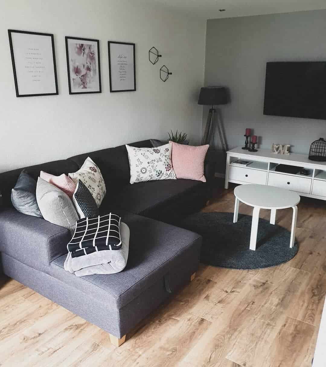- Не выбирайте цвета, визуально уменьшающие и без того малое пространство гостиной. Среди таких цветов встречаются синий, коричневый или черный;