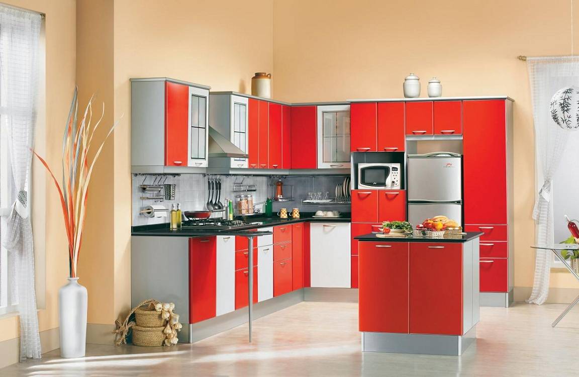 Прямые линии, простые материалы, отсутствие фрезеровки на фасадах кухонного гарнитура и минимум декора – существенно облегчают визуальное восприятие даже самых насыщенных оттенков красного. Минимализм часто используют для маленьких по площади кухонь.
