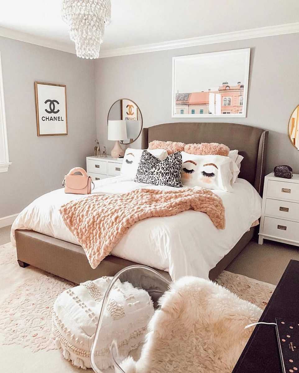 Персиковая спальня с белой мебелью всегда подчеркнет вашу индивидуальность.
