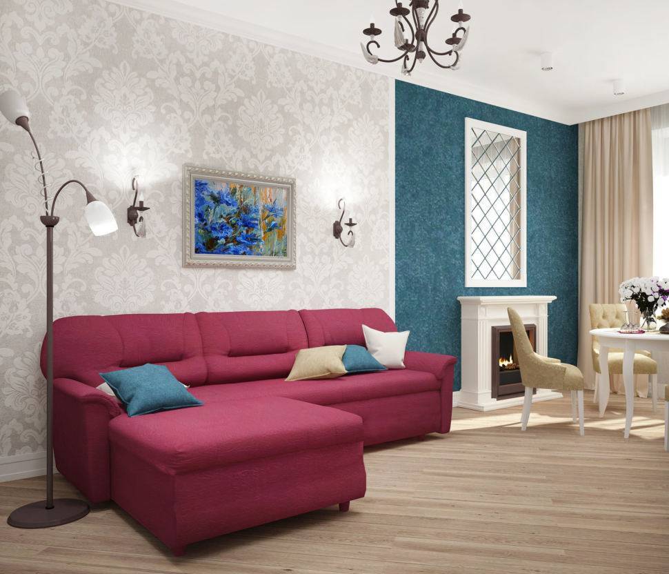 - Гостиная. Если в этом помещении оптимальная высота потолков и площадь, которая позволяет проводить эксперименты, с помощью данного цвета комнату можно превратить в зал для приемов. Лучший вариант – сочетание красного тона с золотом, но если комната небольшая, данная затея не лучший вариант.