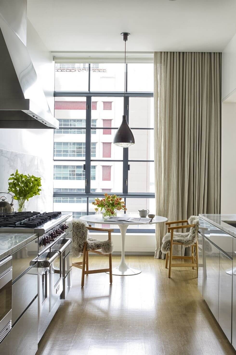 Кухонный стол, совмещенный с рабочей поверхностью кухни, — эргономичное решение пространства, если вам хочется больше свободы.