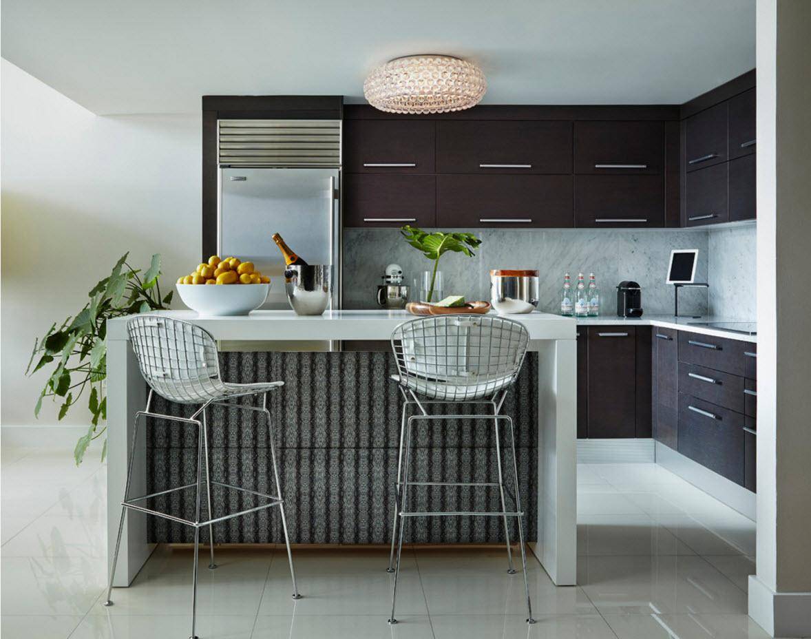 Кухня в шоколадных тонах выглядит роскошно и дорого. Чтобы интерьер не смотрелся мрачно, разбавьте его бежевым или белым.